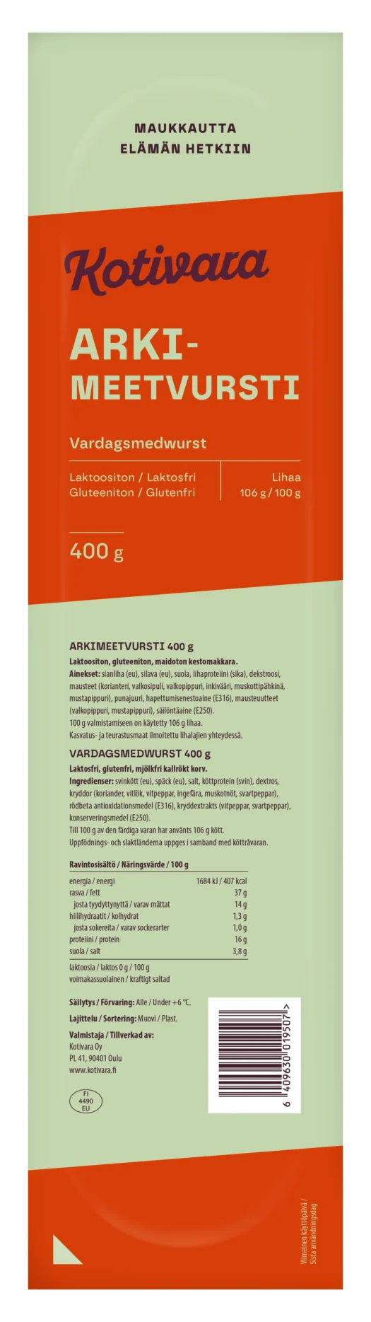 naudanliha (Suomi), suola, dekstroosi, maltodekstriini, sokeri, aromi, hapettumisenestoaineet (E301, E316), mausteuutteet (valkosipuli, katajanmarja, pippuri), säilöntäaine (E250)